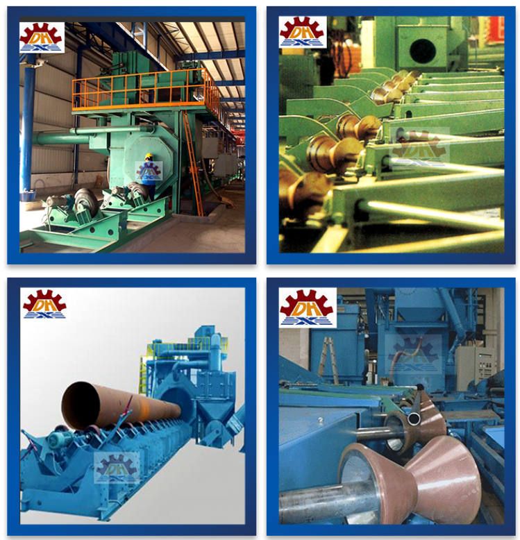 QGW series steel pipes inner/outer wall special purpose shot blasting machine is suitable for blast cleaning inner/outer surface of steel pipes, remove the scales and weld dregs, make it show metal color, increase its surface area, so that to paint and coat.