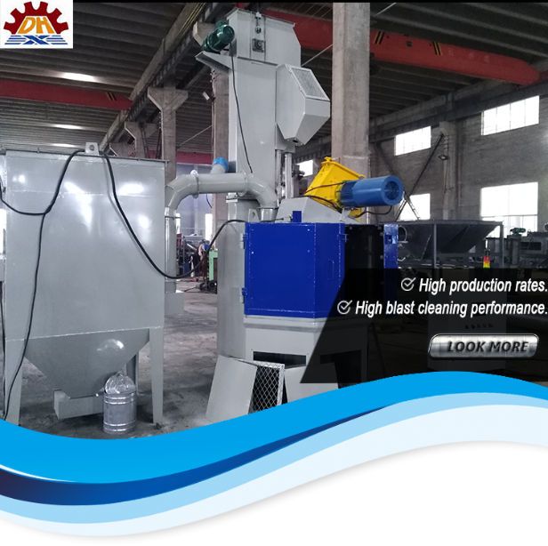 -Equipment: Frequency inverter for rolls conveyor, blast wheel, abrasive recycle system, digital control panel, optional customized automatic loading and offloading system. , dust collector.