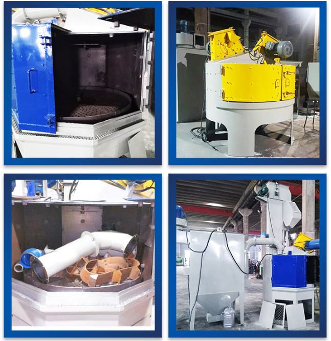 ▼All shot blasting machines are totally integrated with abrasive reclaim systems, separator and dust collector.